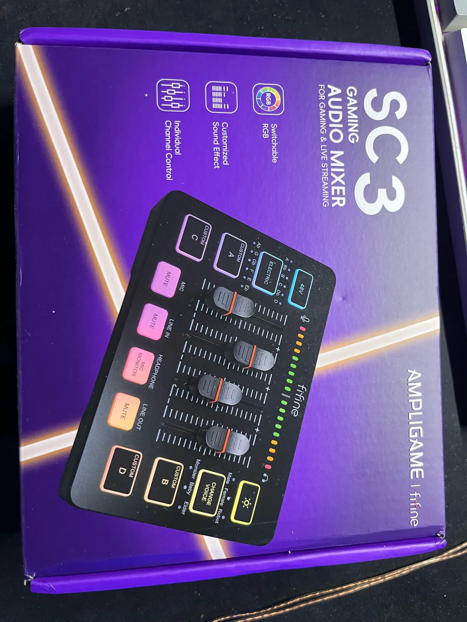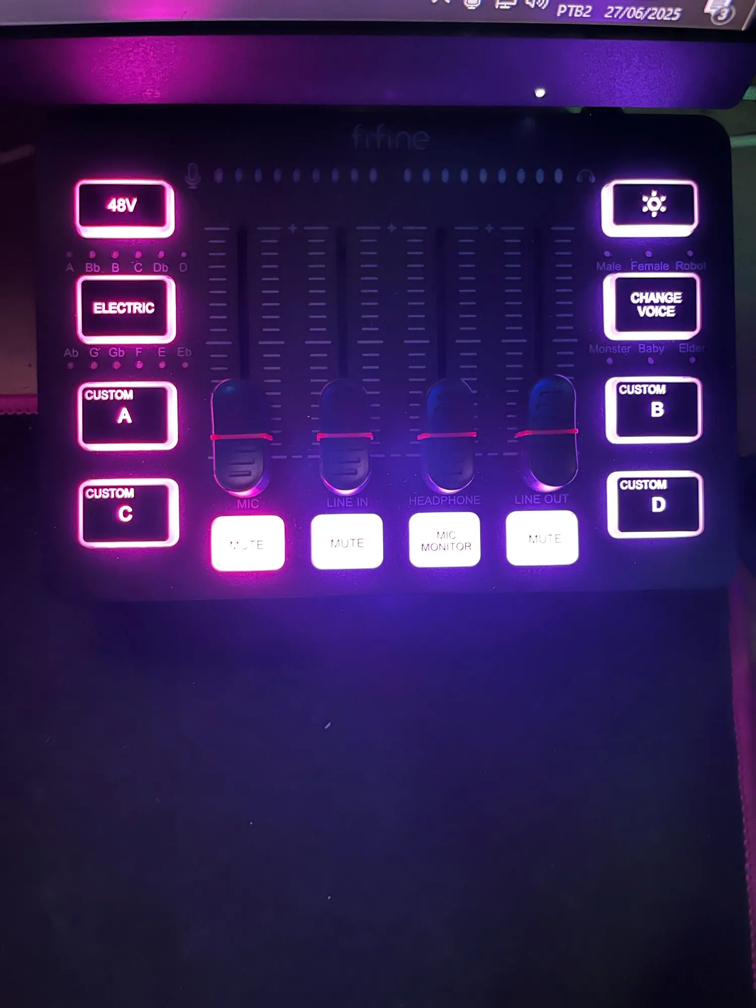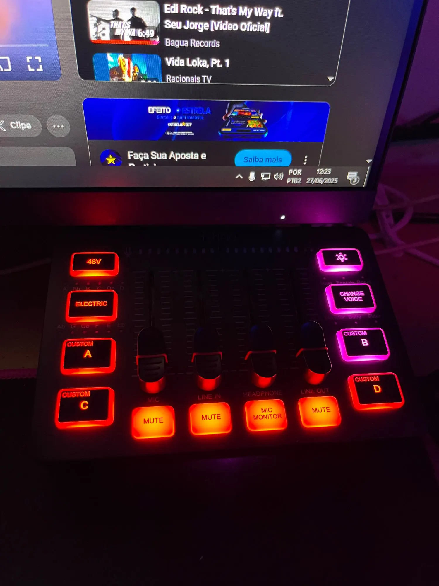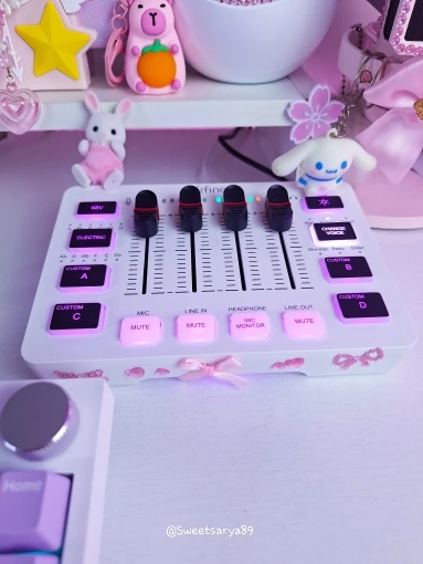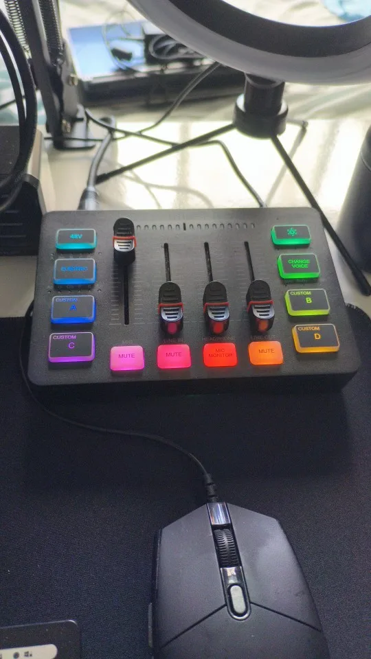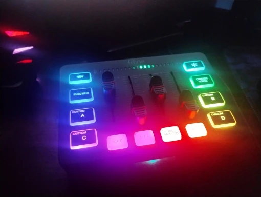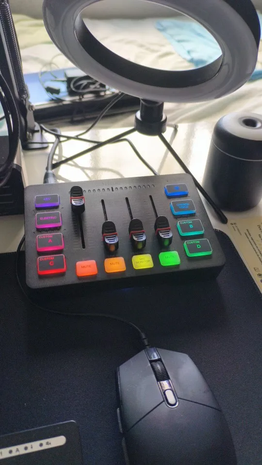 A interface de áudio perfeita com entrada XLR, faders independentes, efeitos de voz, iluminação RGB e phantom power 48V – ideal para gamers, streamers, podcasters e músicos.