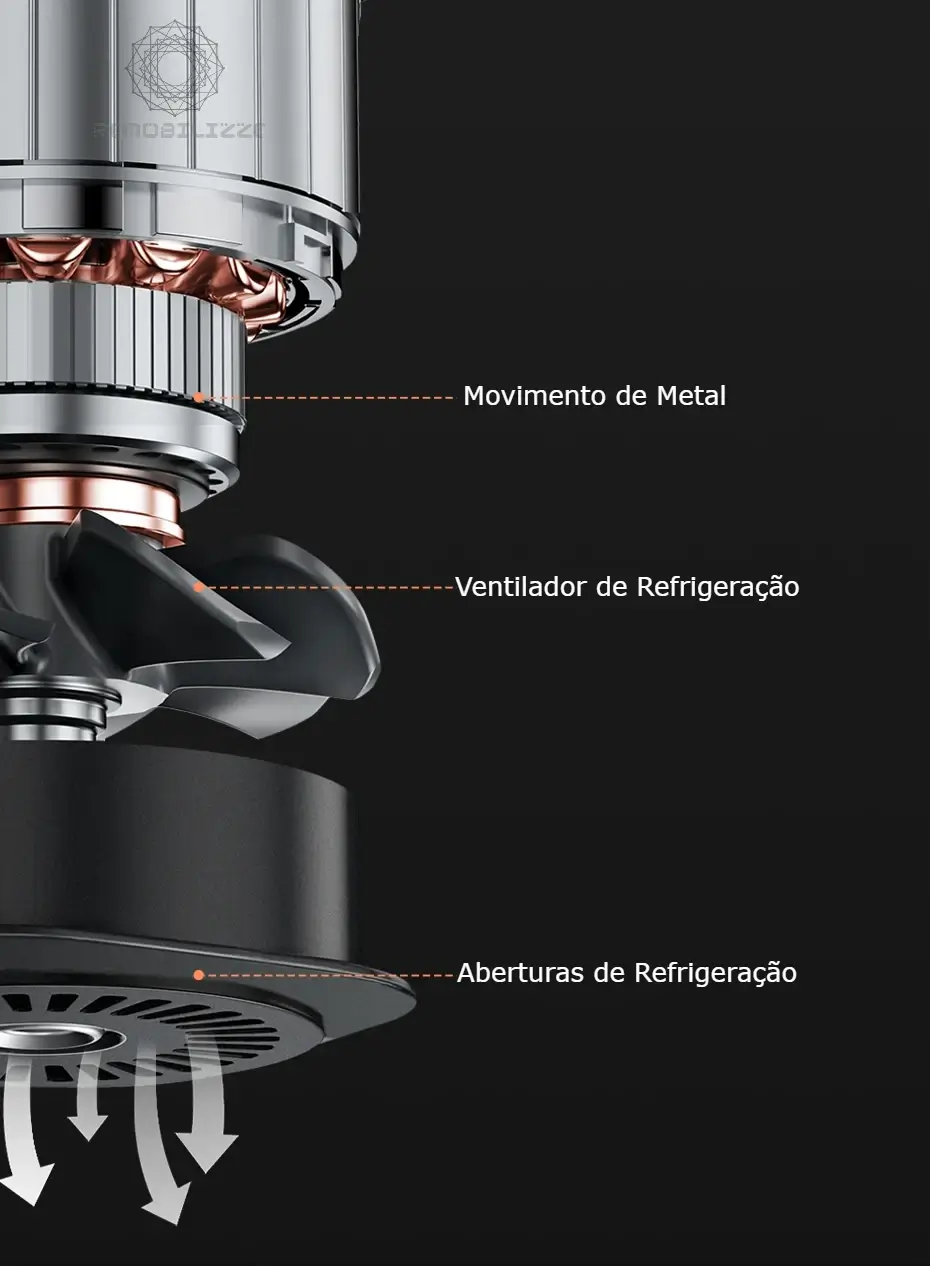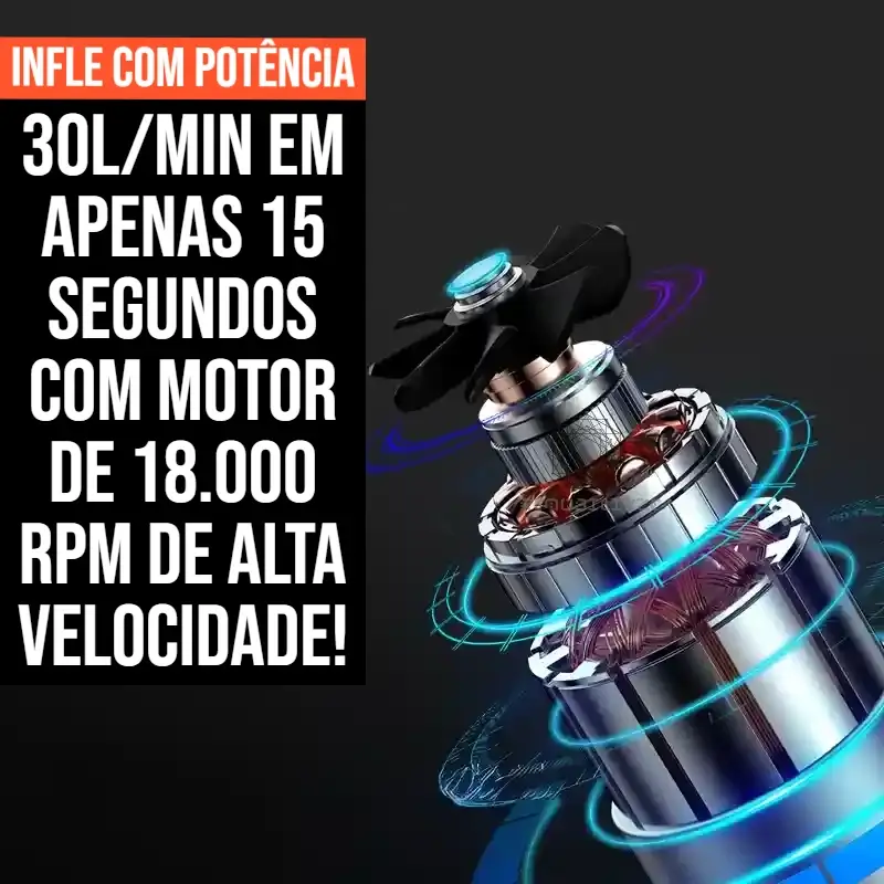 ✅ Motor de 18.000 rpm com vazão de 30L/min – infla um pneu em até 15 segundos