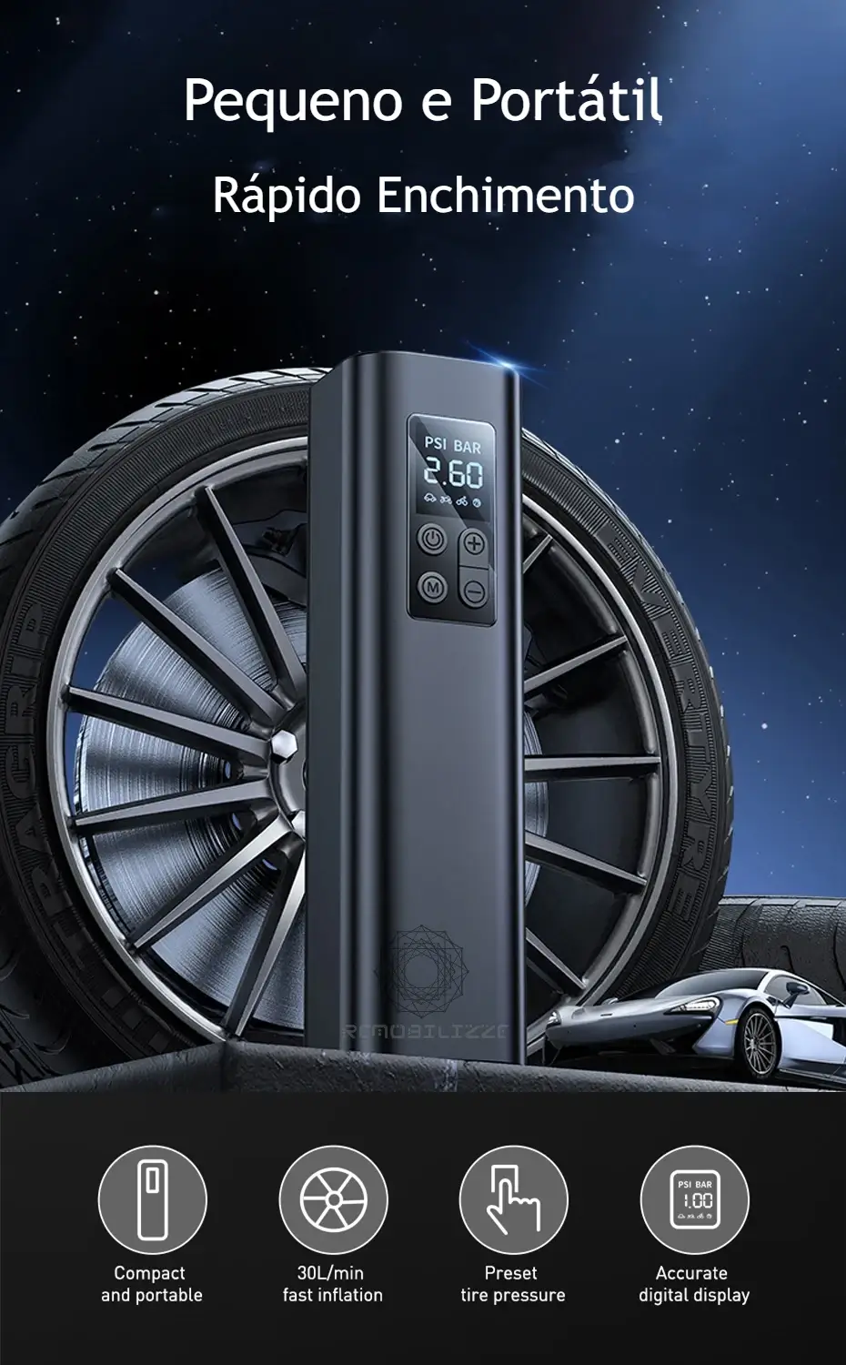 ✨ Destaques do Mini Compressor de Ar Portátil: